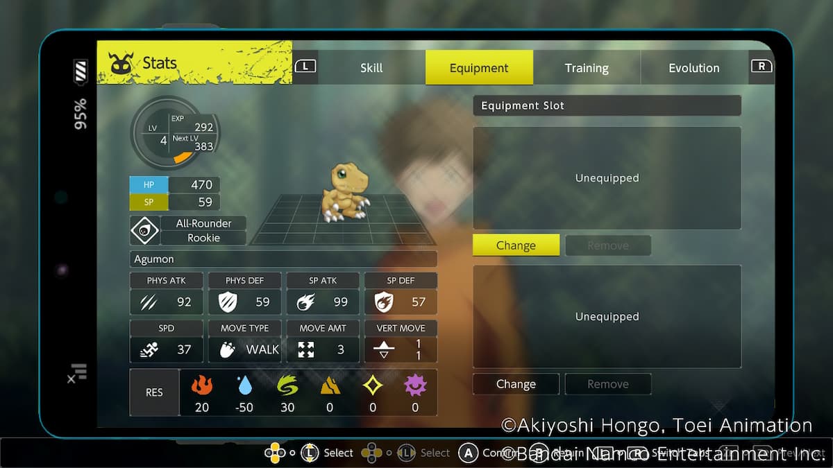 Anda dapat menavigasi profil Digimon dengan menekan ‘L’ atau ‘R.’ Pilihan lain, seperti Skill, Training, dan Evolution, juga akan tersedia untuk disesuaikan.